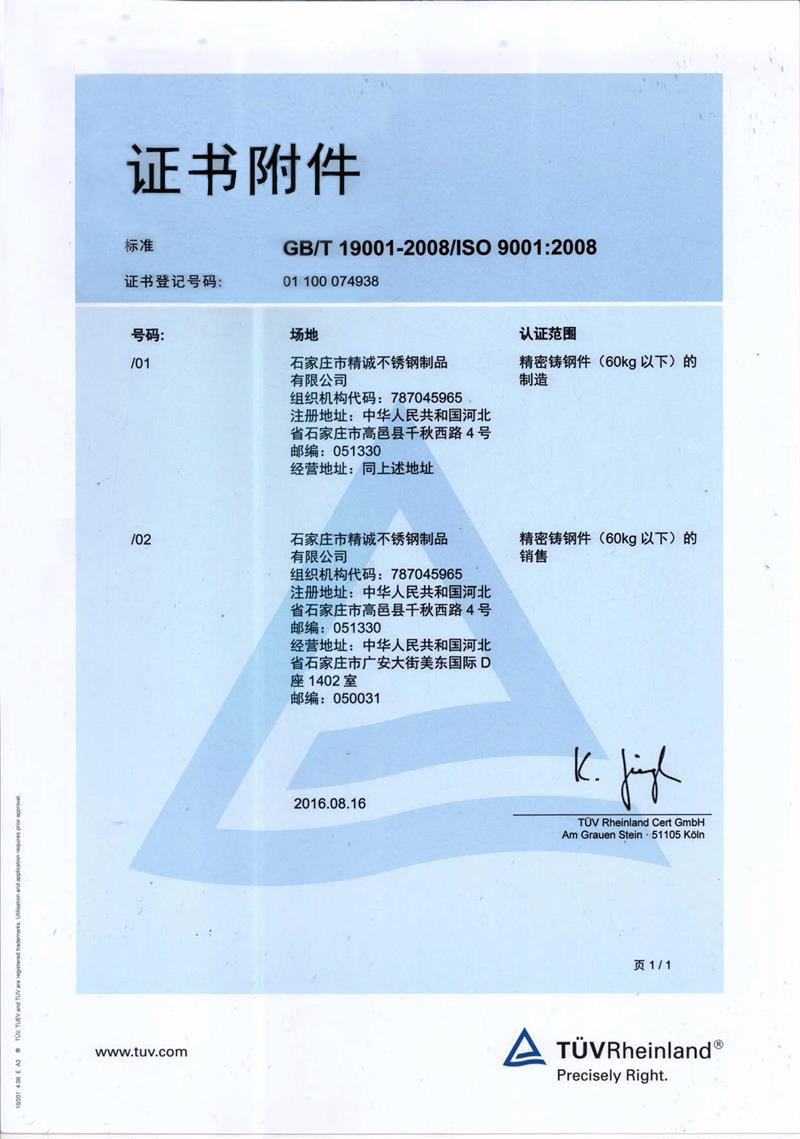 石家莊市精誠不銹鋼制品有限公司,是一家從事專業(yè)精密鑄造的企業(yè)。主要生產不銹鋼、合金鋼、低碳鋼及各種特種合金材質的精密鑄件及加工產品。